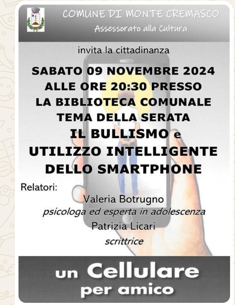 Qualche mese fa è stato presentato il mio ultimo libro “UN CELLULARE PER AMICO” presso i comuni di Monte Cremasco, Dresano, Colturano e Peschiera Borromeo.